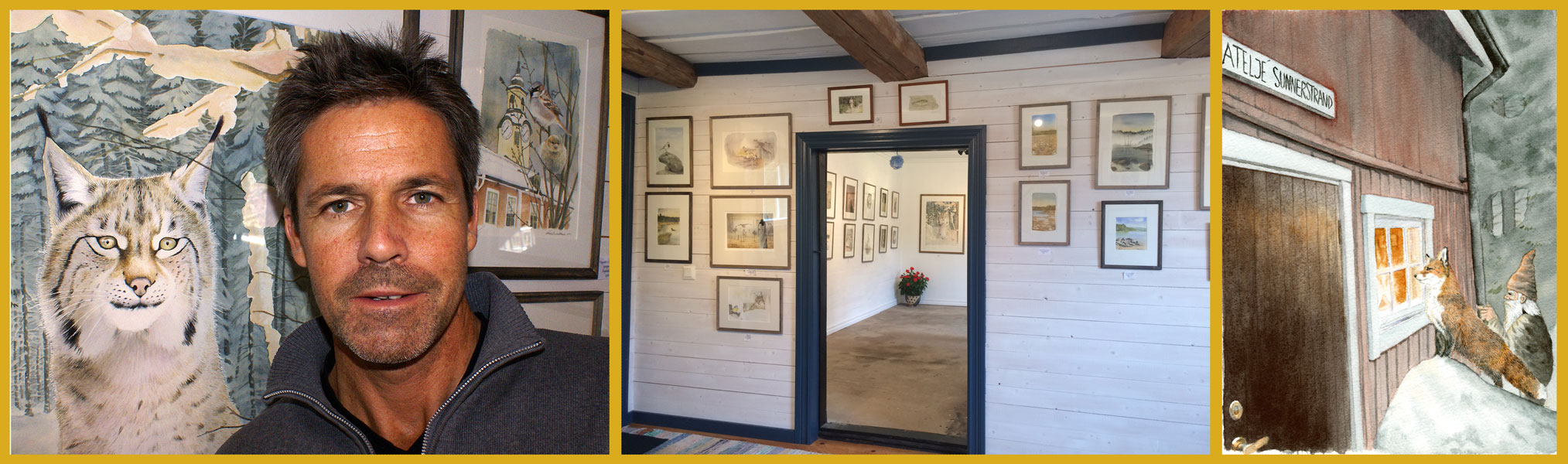 Akvareller mm av Mikael Sunnerstrand. Som konstnär är jag helt självlärd. Jag målar i första hand fåglar , djur och naturmotiv. Vill ni se mer av min konst är ni välkomna till min ateljé i Järsjö, mellan Hargshamn och Hallstavik i norra roslagen. Jag har numera två rum inredda som utställningslokal för min konst, på nedre plan och min ateljé på övervåningen. Ateljén är inredd i en gammal ladugård med skogen inpå knuten och havet inom gångavstånd. På sommaren är det nära till andra konstutställningar, som Järnboden & Bruksgården i Harg med flera. Ring före så att vi är hemma, och för vägbeskrivning. Gratis inträde så klart. Hjärtligt VÄLKOMNA! Om ni gillar min sida på Facebook så får ni inbjudningar till mina utställningar mm. http://www.facebook.com/mikaelsunnerstrandart